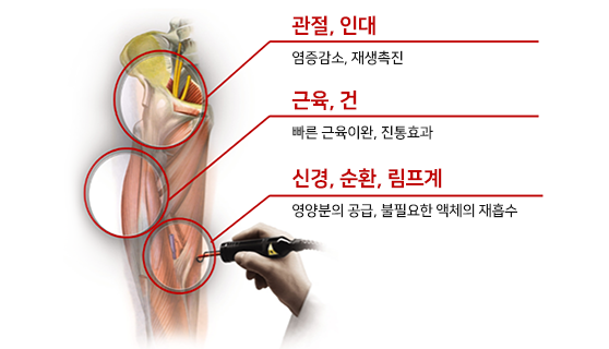 • 1관절, 건, 인대 등의 염증을 제거하고, 연골의 재생에 자극을 줍니다.